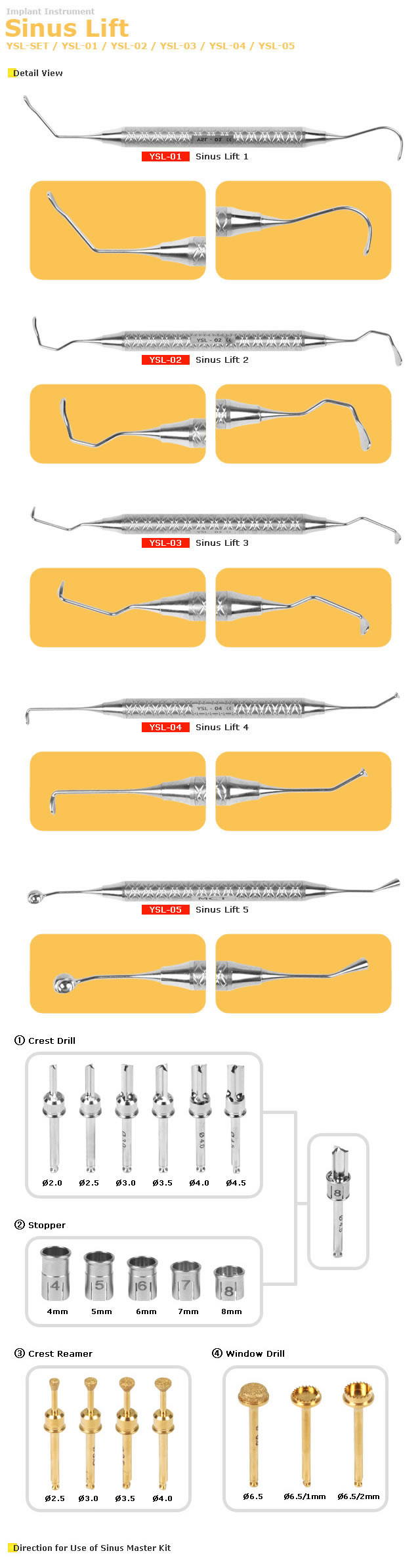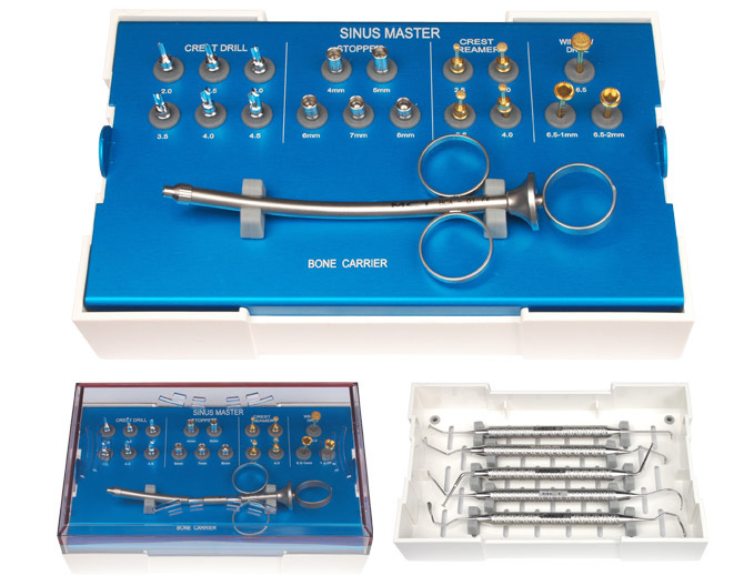 Toute l'instrumentation nécessaire pour vos interventions sur les sinus par voie crestale ou latérale.