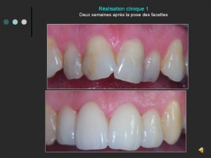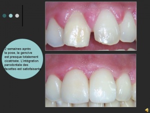 L'auteur développe les nombreuses indications de facetttes. Il introduit un concept tout à fait original concernant la relation entre la pose de facettes et la cicatrisation parodontale. Il se propose de conjuguer de façon simultanée un traitement parodontal et de l'associer à la pose de facettes. La facette va imposer au parodonte sa morphologie. C'est ce que l'auteur appelle la synergie "facettes - paro".