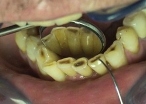 Le patient consulte pour des colorations brunes au niveau des bords libres des incisives inférieures.